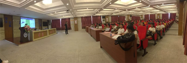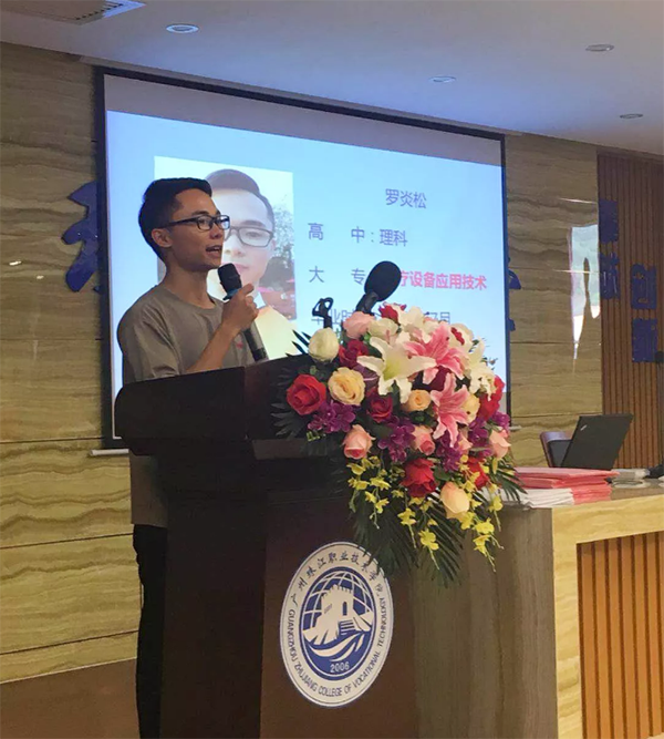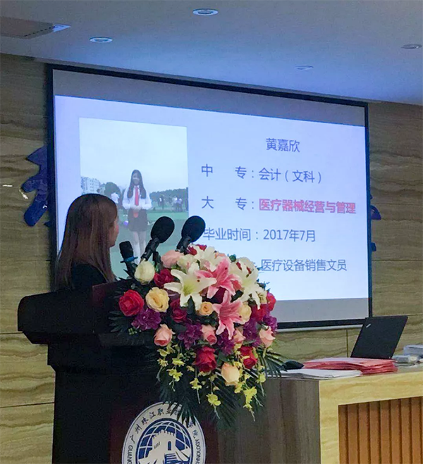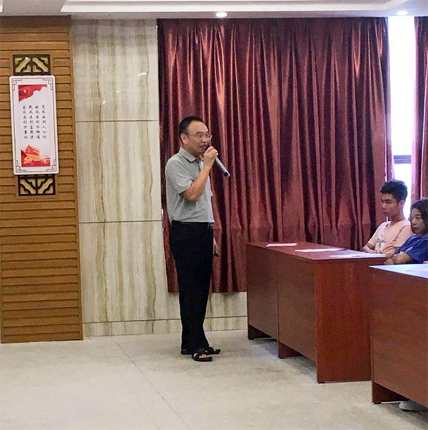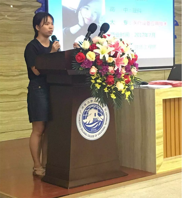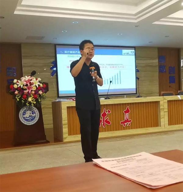 在徐老师发表完讲话后,由广东德鑫医疗科技有向公司吴总为全体新生介绍了关于医疗器械行业的整体概况。从行业前景、就业率、创业率、授课资源等各方面进行了全面的介绍,也让2018级全体新生对医疗器械专业有了更多深刻的了解。重点指出特色的教学模式暨由专业老师与行业精英组合的双教学模式为同学们在专业上保驾护航,以及近千万的教学设备投入一定要培养同学们的动手能力和实际操作能力。