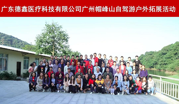 2018年11月23—24日广东德鑫医疗科技有限公司组织全体员工前往广州帽峰山举行户外拓展活动。(除留守驻场工程师,值班的工程师们辛苦了。)此次户外拓展活动将亲近自然、健康生活与公司团队建设紧紧结合在一起,加深同事之间了解并建立相互的信任。在先举行的员工会议上,大家分享经验、总结教训,并深刻体会到只有团队紧紧的凝聚在一起,勤于沟通、善于分享、相互协作、共同努力才能为集体创造出最大的价值。