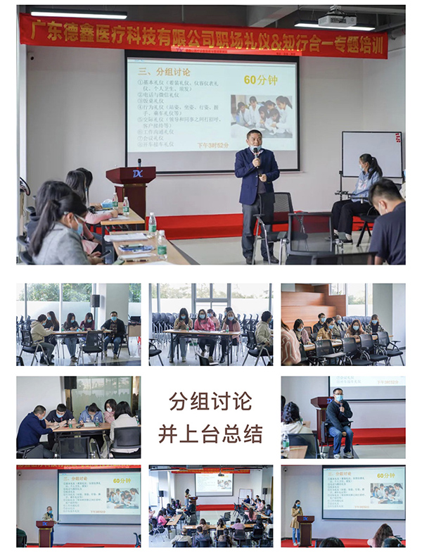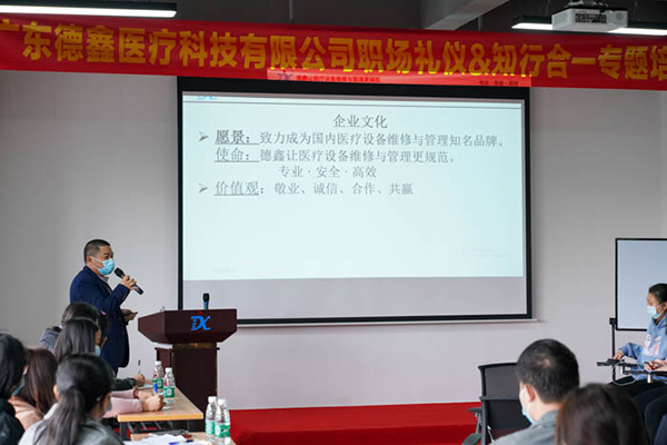 培训会上,王老师结合实际情况进行了深入浅出、生动细致的讲解,并邀请两位学员进行一对二礼仪快乐谈话,学员结合自身的生活与经验在面对不同的人物时,在见面礼仪、介绍礼仪、交谈礼仪、餐桌礼仪、会客礼仪,等方面聊聊自己的见解,其他学员们认真记录,学习氛围融洽!
