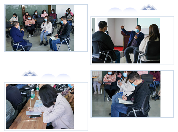 随后王老师组织各成员进行分组讨论各自的话题,各小组通过各种渠道搜集资料做出总结后上台分享,王老师当场点评,现场气氛活跃热烈,整个培训过程轻松愉悦、和谐向上。