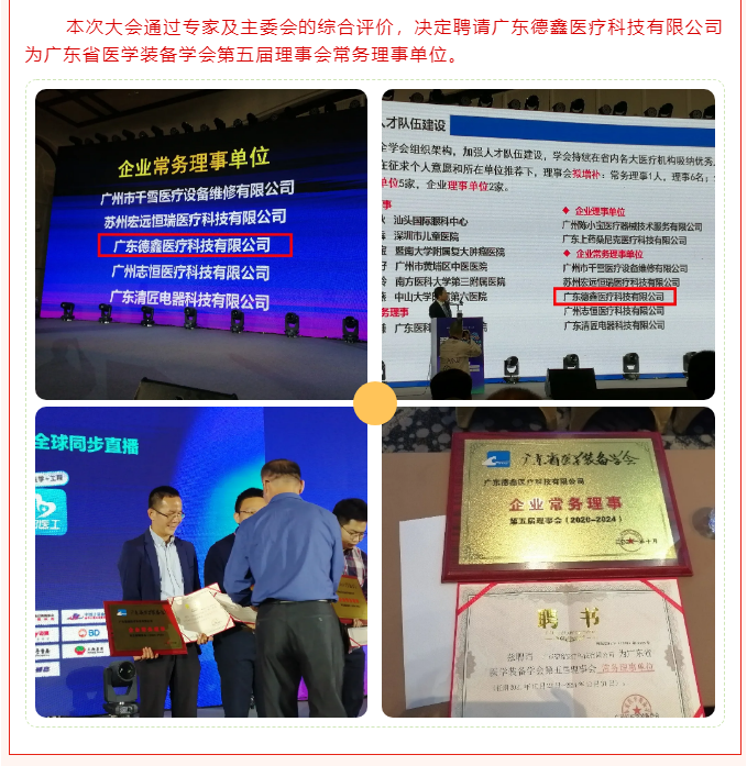 恭喜“广东德鑫医疗科技有限公司”评为“广东省医学装备学会第五届理事会常务理事单位”